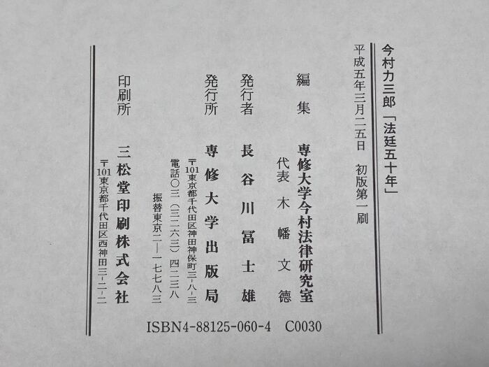 今村力三郎「法廷五十年」 専修大学出版局 専修大学