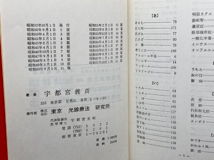 光線療法学 宇都宮義眞 東京光線療法研究所 昭和57 21刷