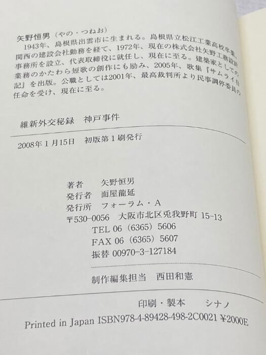 維新外交秘録神戸事件 フォーラムA企画 矢野 恒男