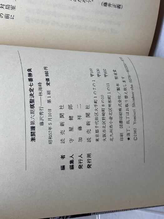 激闘譜 第六期棋聖決定七番勝負 藤沢秀行 林海峰 読売新聞社