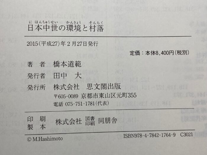 日本中世の環境と村落 思文閣出版 橋本 道範