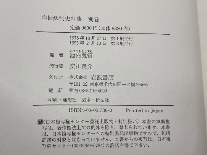 御成敗式目・註釈書集要 (中世法制史料集 別巻) 岩波書店 池内 義資