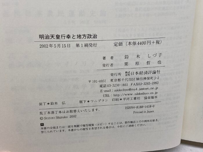 明治天皇行幸と地方政治 日本経済評論社 鈴木 しづ子