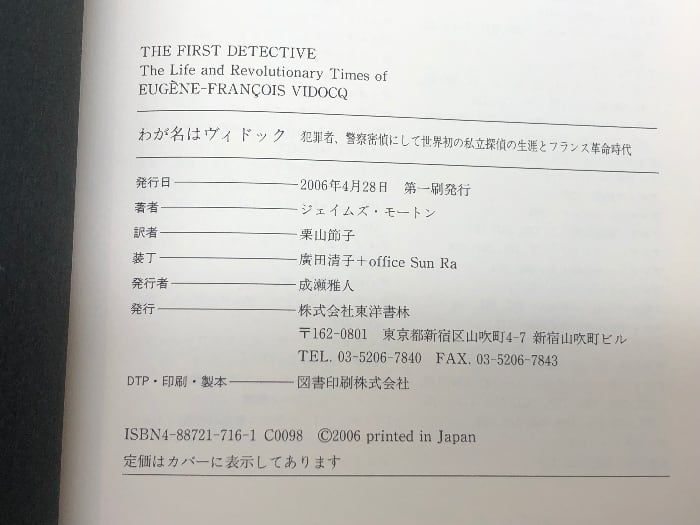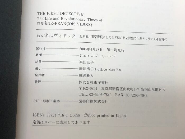 わが名はヴィドック: 犯罪者、警察密偵にして世界初の私立探偵の生涯とフランス革命時代 東洋書林 ジェイムズ モートン