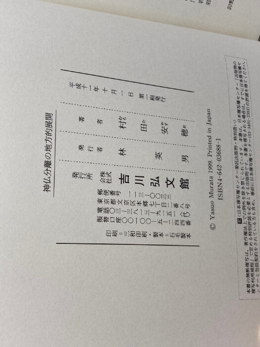 神仏分離の地方的展開 吉川弘文館 村田 安穂