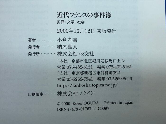 近代フランスの事件簿: 犯罪・文学・社会 淡交社 小倉 孝誠