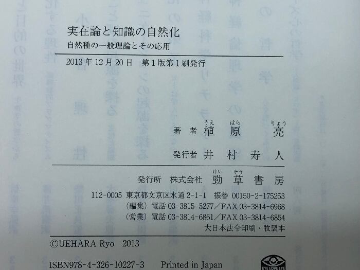 実在論と知識の自然化: 自然種の一般理論とその応用 勁草書房 植原 亮