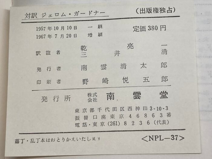 対訳ジェロム/ガードナー 現代作家 37 南雲堂