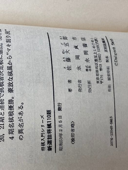 新選詰将棋110題 実戦に強くなる精選問題 佐藤大五郎 永岡書店