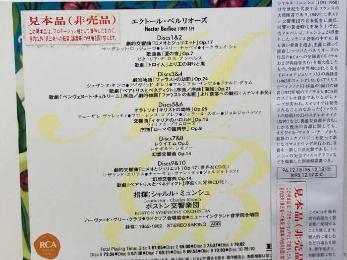 10CDBOX ミュンシュ・ベルリオーズ集成 シャルル・ミュンシュ指揮 ボストン交響楽団 ※見本品※