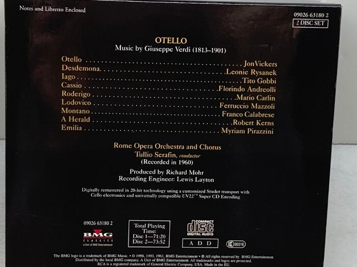2CD ヴェルディ オテロ トゥリオ・セラフィン指揮 ジョン・ヴィッカース EU盤