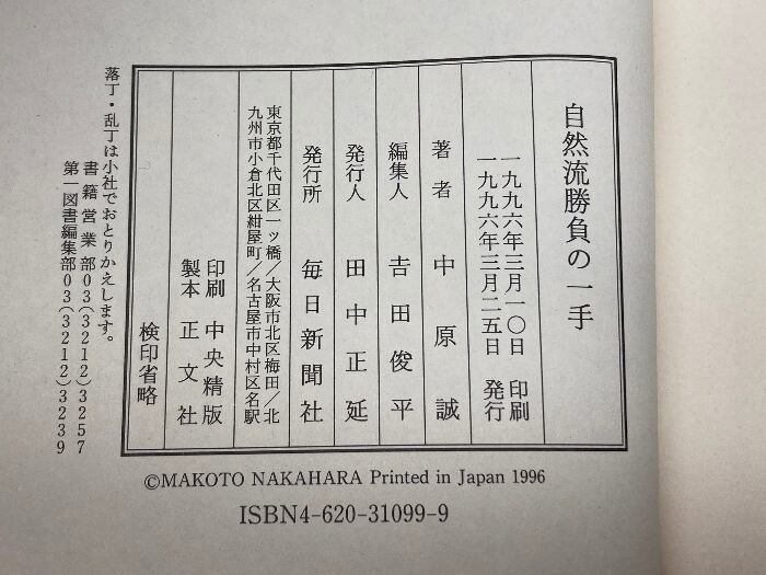 自然流勝負の一手 毎日新聞出版 中原 誠
