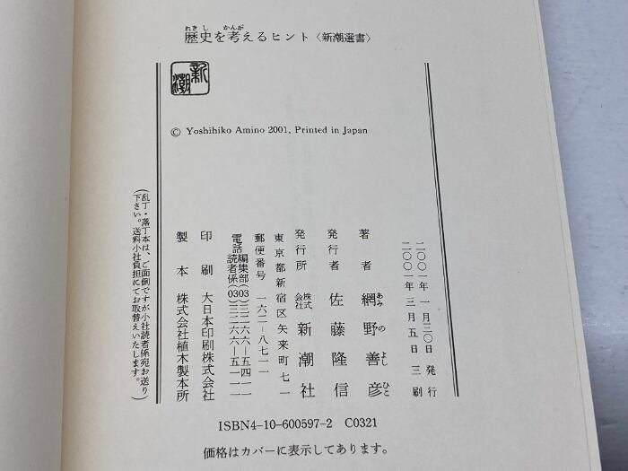 歴史を考えるヒント (新潮選書) 新潮社 網野 善彦