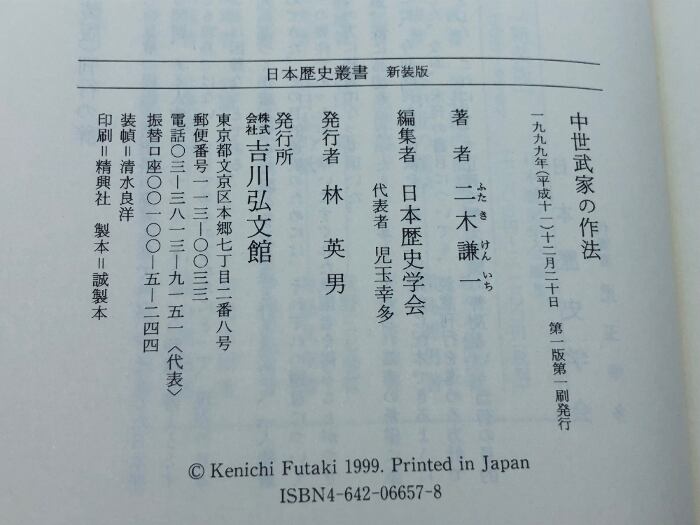 中世武家の作法 (日本歴史叢書 新装版 58) 吉川弘文館 二木 謙一