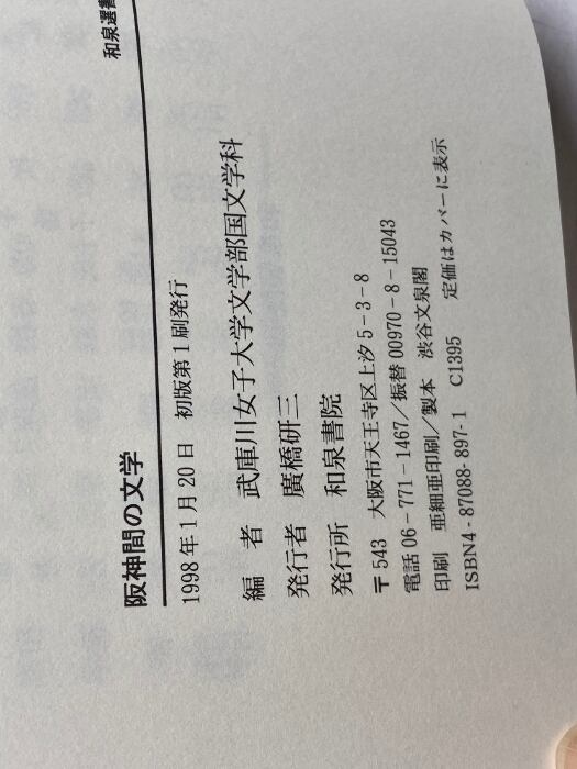阪神間の文学 (和泉選書 112) 和泉書院 武庫川女子大学文学部国文学科