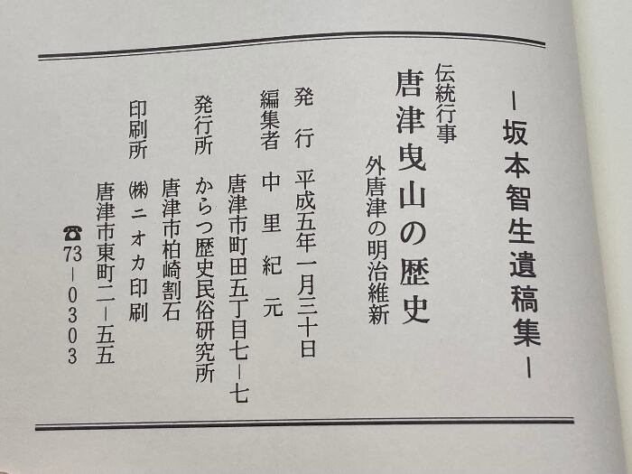 唐津曳山の歴史 外、唐津の明治維新 坂本智生遺稿集