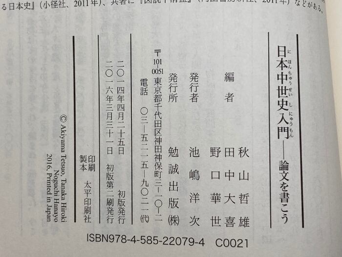 日本中世史入門―論文を書こう 勉誠出版 秋山哲雄