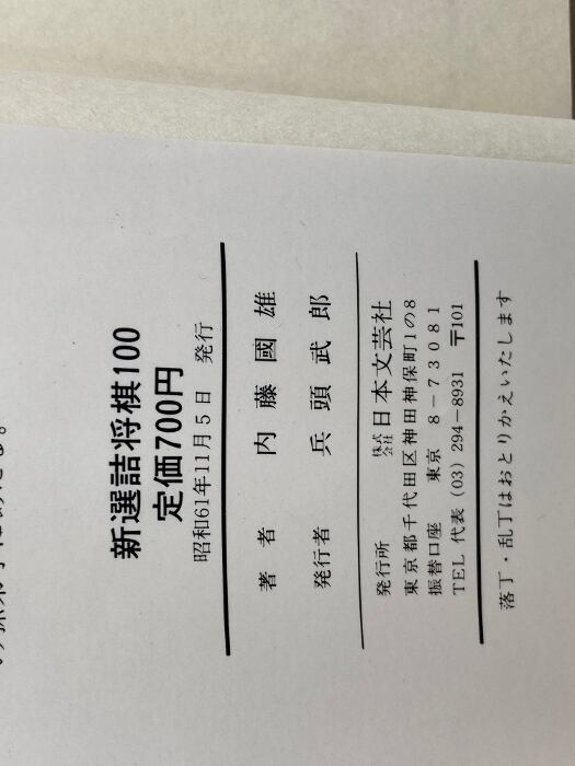 新選詰将棋100 日本文芸社 内藤 國雄