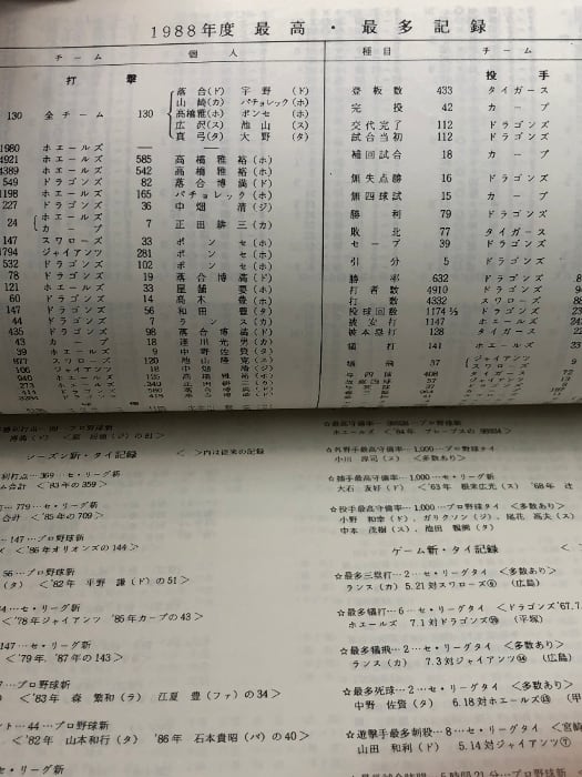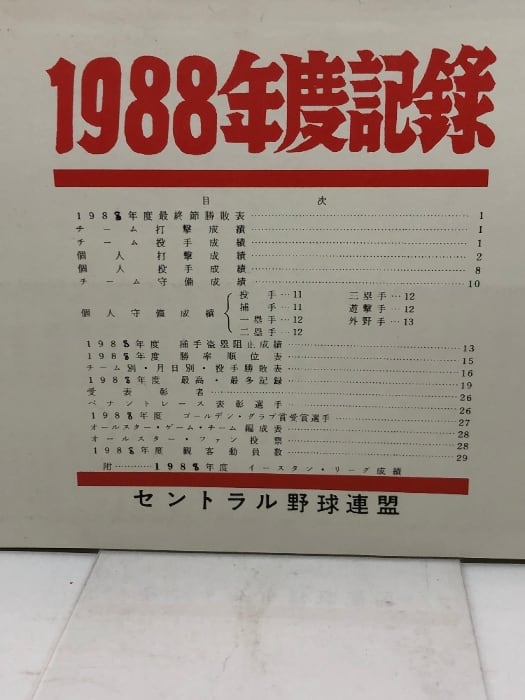 プロ野球資料 1988年度記録 セントラル野球連盟 20P