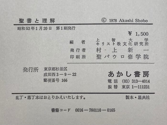 聖書と理解 (1978年) あかし書房 上智大学キリスト教文化研究所