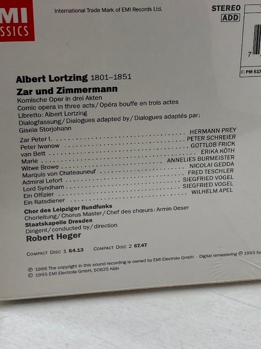 未開封2CD アルベルト・ロルツィング Lortzing: Zar Und Zimmerman ロシア皇帝と船大工 EMI/Angel/Virgin/Imports Hermann Prey | 古書・古本・清泉堂書店