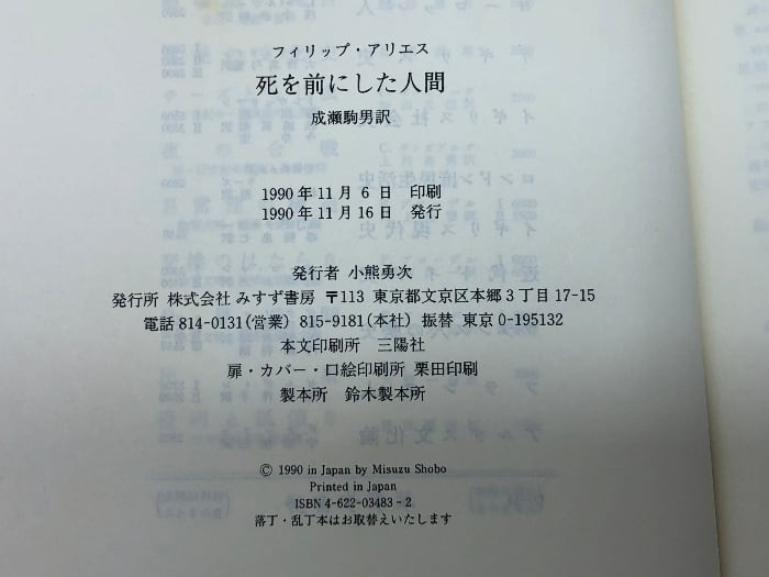 死を前にした人間 みすず書房 フィリップ・アリエス