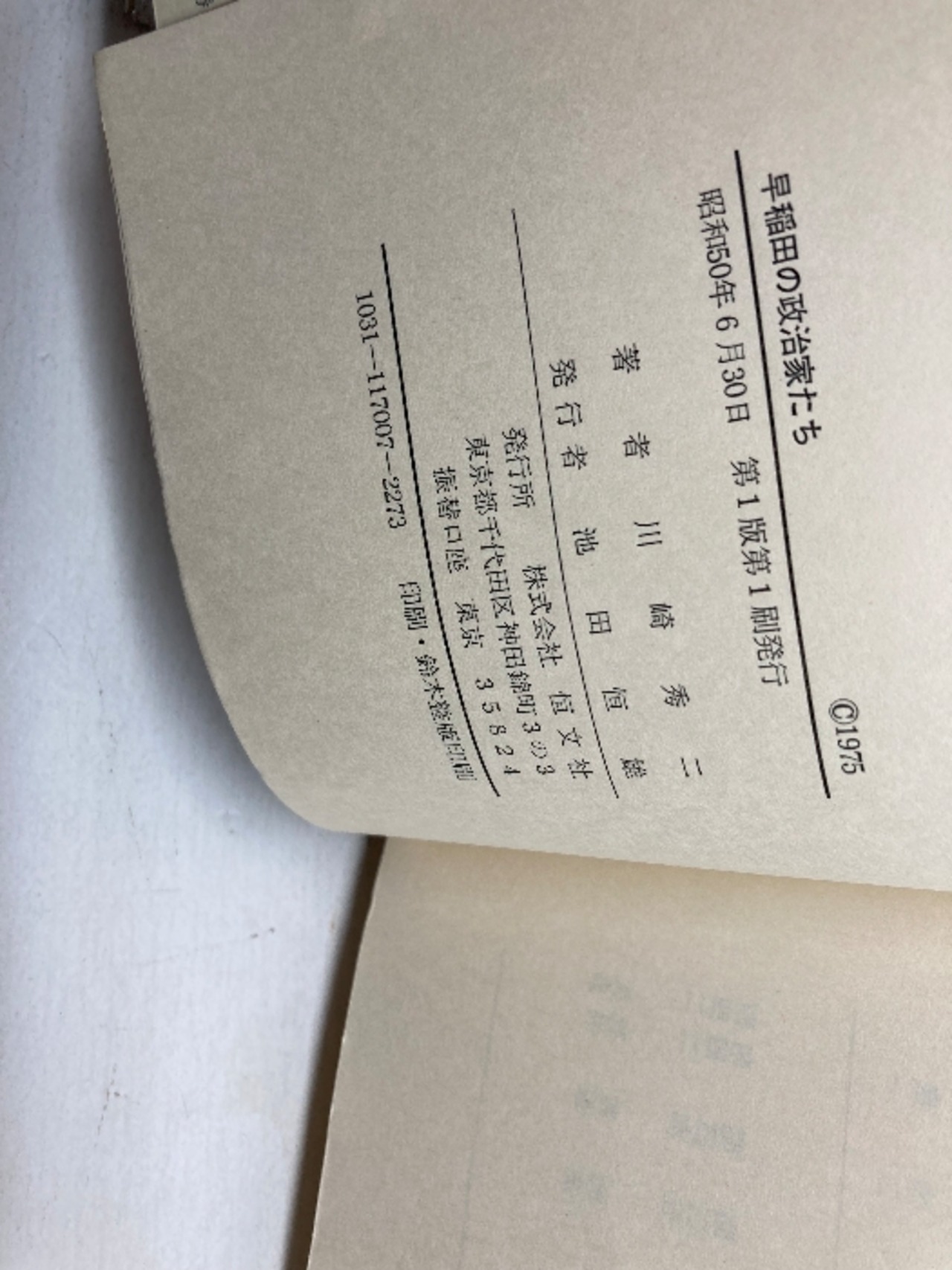 早稲田の政治家たち 川崎秀二 恒文社