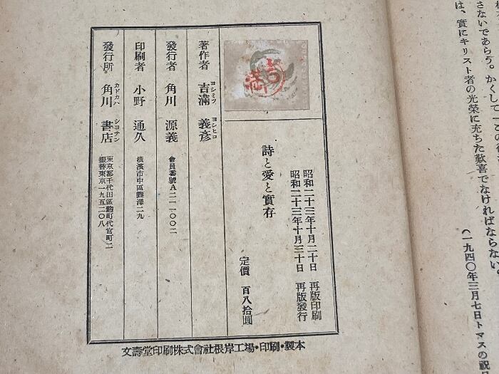 詩と愛と實存 哲学選書 吉満義彦 角川書店