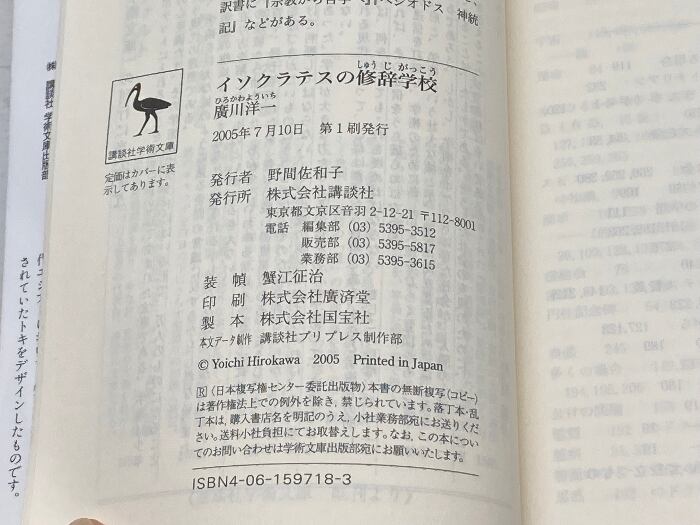 イソクラテスの修辞学校: 西欧的教養の源泉 (講談社学術文庫 1718) 講談社 廣川 洋一