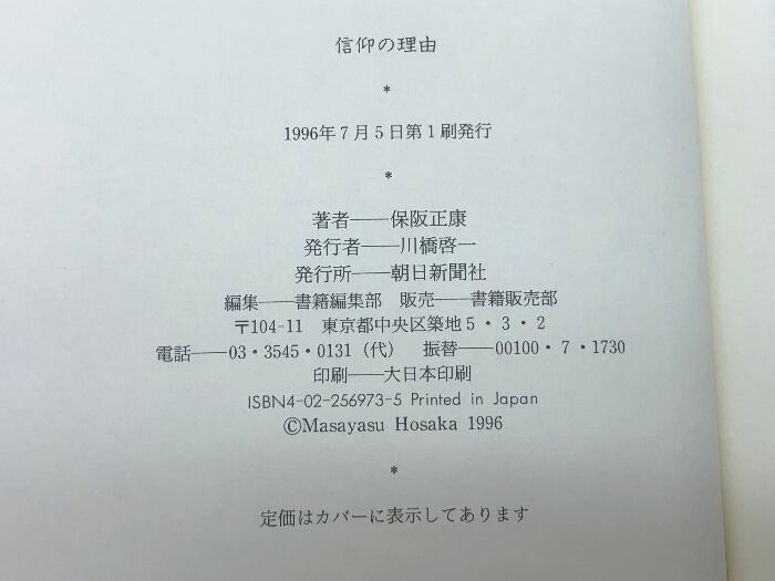信仰の理由 朝日新聞出版 保阪 正康