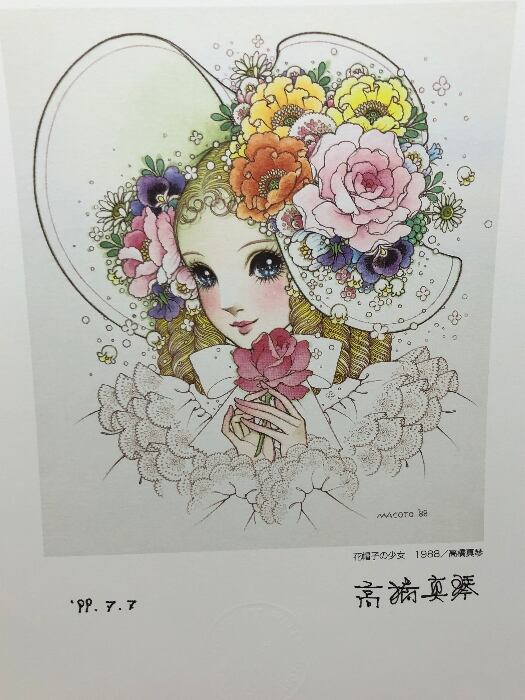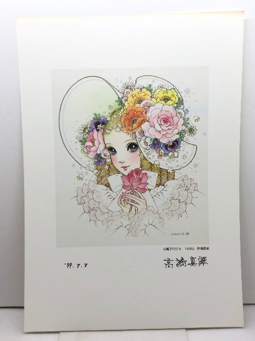 高橋真琴 直筆サイン入り複製原画「花帽子の少女 1988」エンボス刻印 【模写】