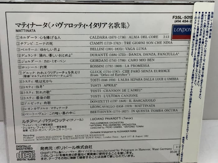 CD マティナータ パヴァロッティ・イタリア名歌集 西独盤