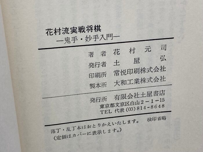 花村流実戦将棋 鬼手・妙手入門 花村元司 土屋書店