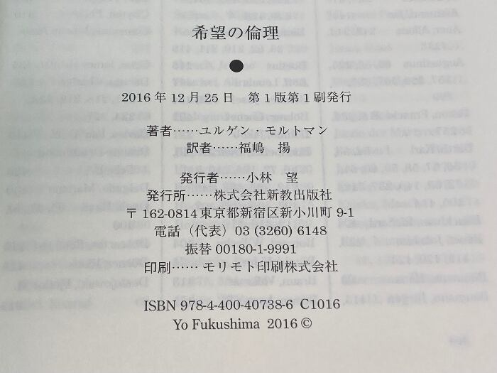 希望の倫理 新教出版社 ユルゲン・モルトマン