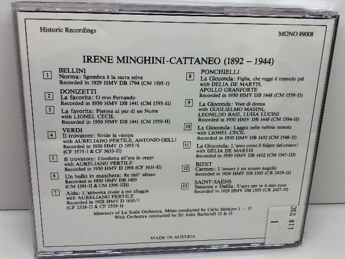 CD イレーネ・ミンギーニ=カッタネオ Irene Minghini-Cattaneo オーストリア輸入盤 Lebendige Vergangenheitシリーズ 1989年 | 古書・古本・清泉堂書店