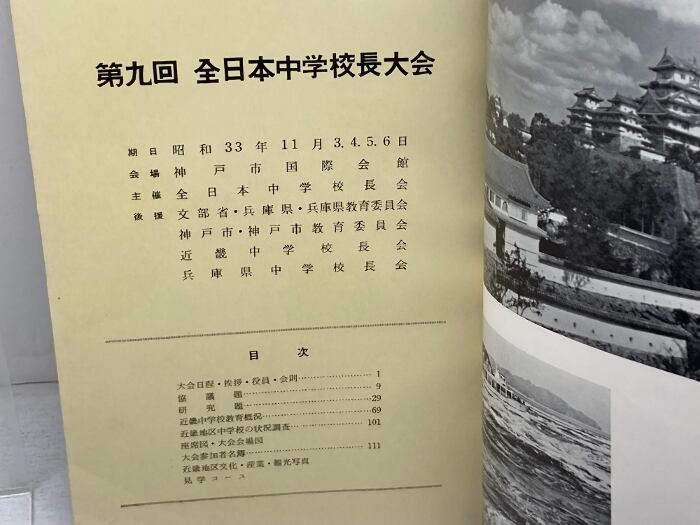 第9回 全日本中学校長大会用録 兵庫県中学校長会 表紙・川西英 1958