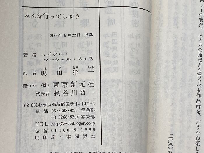 みんな行ってしまう 東京創元社 マイケル・マーシャル・スミス 2005年初版