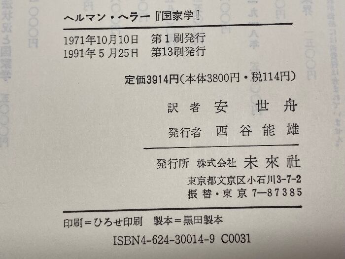 国家学 未来社 ヘルマン・ヘラー