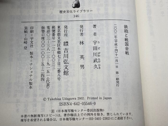 鉄砲と戦国合戦 (歴史文化ライブラリー 146) 吉川弘文館 宇田川 武久