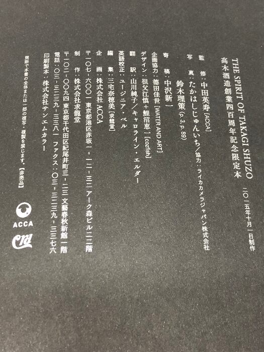 高木酒造四百周年記念限定本 THE SPIRIT OF TAKAGI SHUZO 2015/10