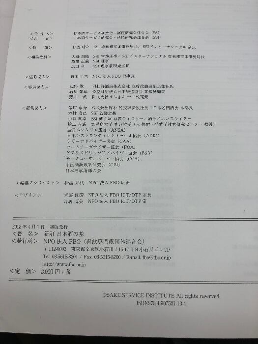 新訂 日本酒の基 NPO法人FBO 日本酒サービス研究会・酒匠研究会連合会