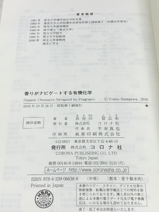香りがナビゲートする有機化学 コロナ社 長谷川 登志夫