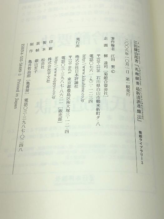 乳酸馴養最新清酒連醸法 (菊姫ライブラリー 3) 日本評論社 江田 鎌治郎