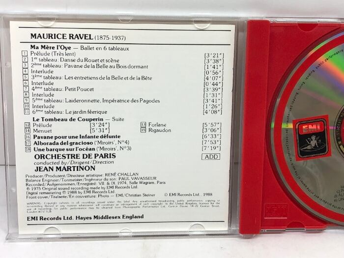 CD マルティノン指揮 ラヴェル「マ・メール・ロワ」、「クープランの墓」 パリ管弦楽団 EMI輸入盤