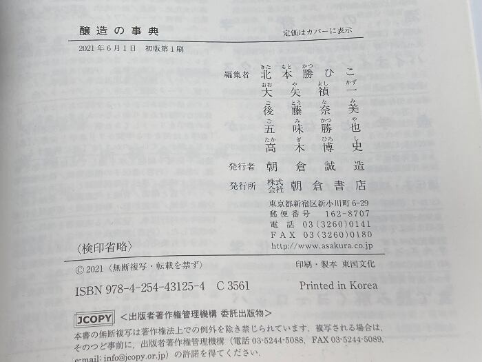 醸造の事典 朝倉書店 北本勝ひこ 他編 2021年