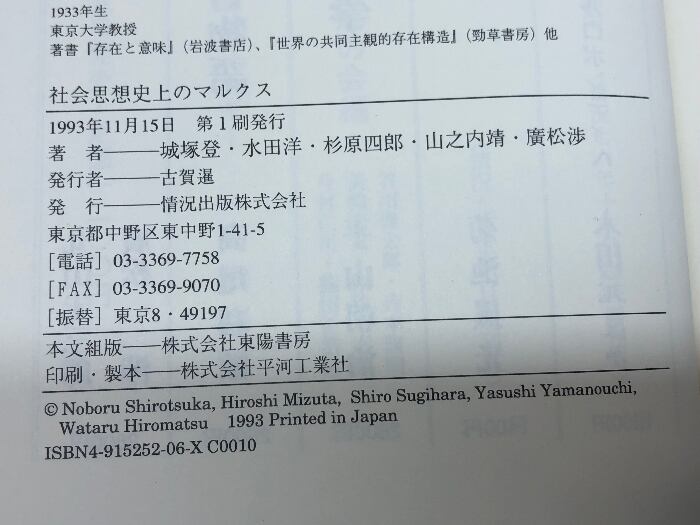 社会思想史上のマルクス 情況出版 城塚 登