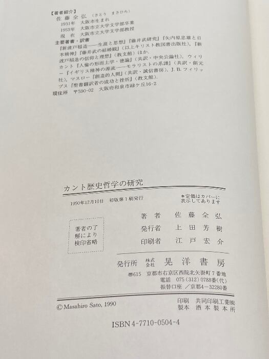 カント歴史哲学の研究 (哲学叢書) 晃洋書房 佐藤 全弘