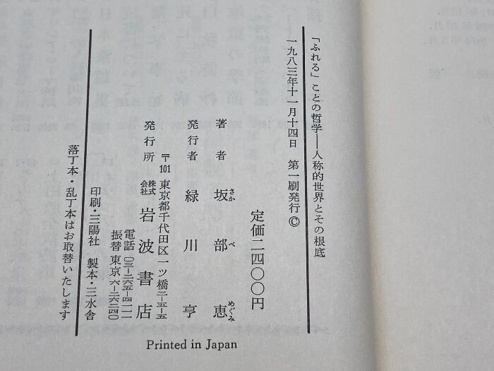 「ふれる」ことの哲学―人称的世界とその根底 (1983年)