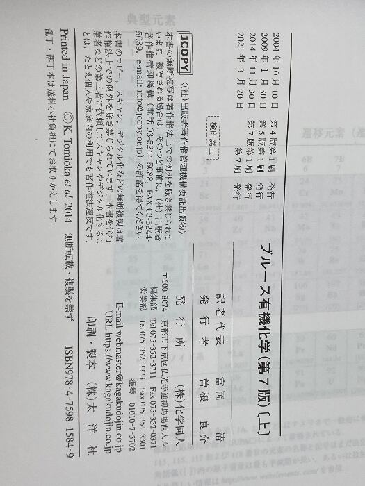ブルース有機化学 第7版 [上] 化学同人 P.Y. ブルース
